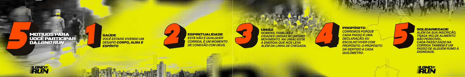 A Legendários Run – LGND RUN – é o circuito oficial do Grupo Legendários, um movimento que inspira famílias a viverem com propósito, fé e disciplina. Mais do que um evento esportivo, é uma experiência completa de conexão, superação e comunhão cristã. Antes e depois da prova, momentos de oração, louvor e reflexão reforçam o verdadeiro sentido da jornada — dentro e fora das pistas.